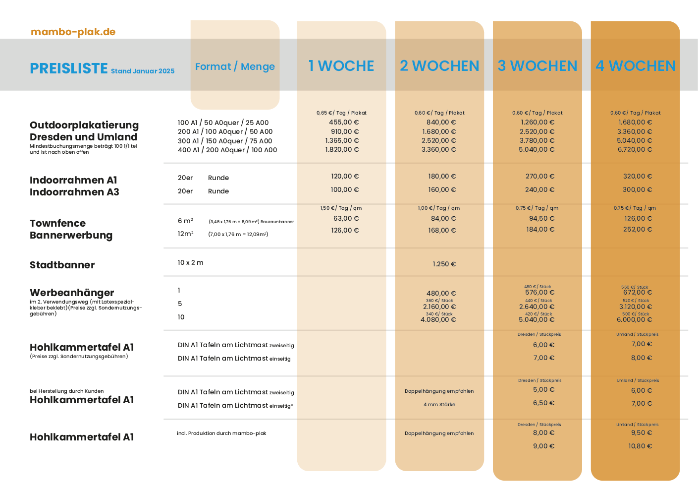 Hier finden Sie unsere aktuelle Preisliste für die meisten Produkte.